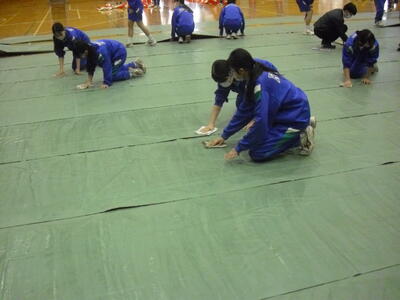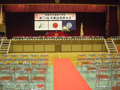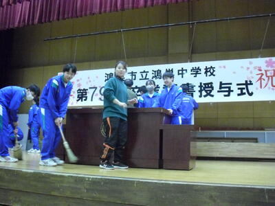 明日3/13(金)は第79回卒業証書授与式です。~1、2年生が会場準備をしました。~