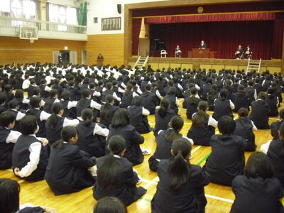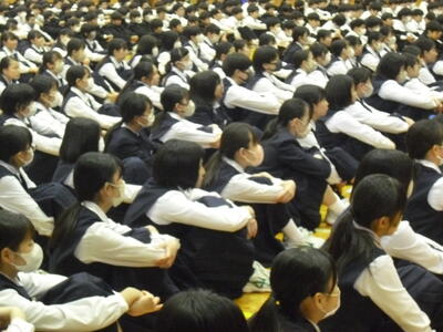 さらに広がるあいさつ運動-生徒会の呼びかけに集まる鴻巣中生徒-