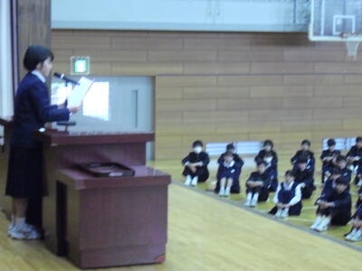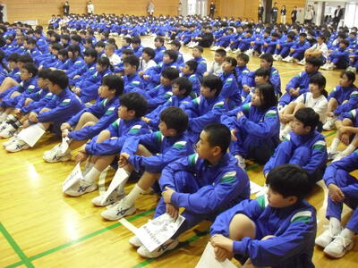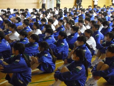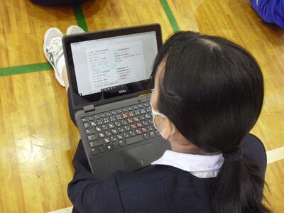 全校オリエンテーション(於いて体育館、学習者用端末を活用して)