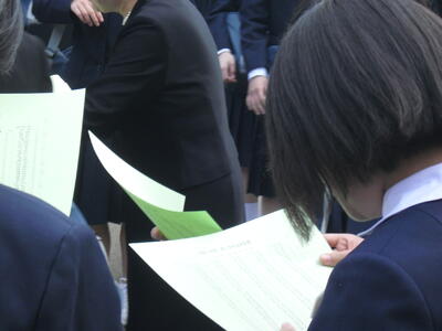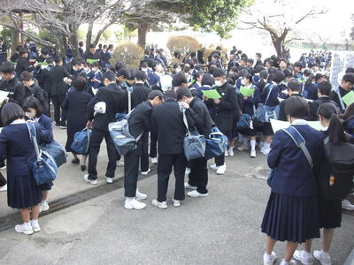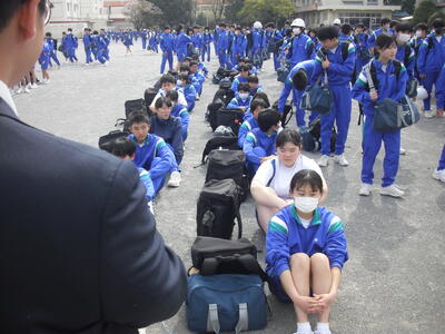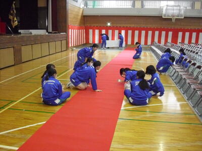 明日は第79回入学式 ~新入生を迎える準備着々(体育館・1年生校舎・校庭で)~