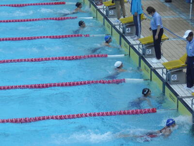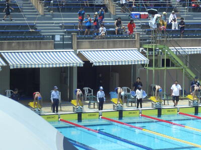 鴻中生、水泳でも躍動! 島村玲央君全国大会出場決定!-50M自由形で県3位 於いて川口市青木町総合運動公園プール-