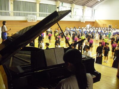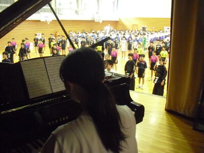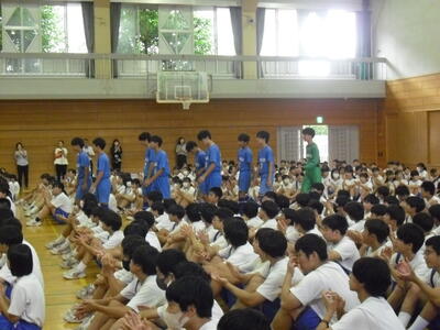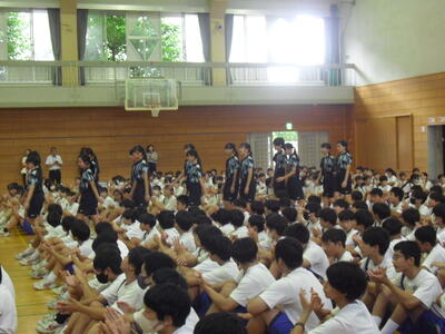 学校総合班大会壮行会-各部入場・各部決意表明・鴻巣中の宝『校歌(山田耕筰作曲)』-