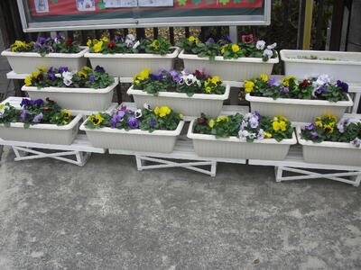 鴻巣市の花「パンジー」 と 冬の訪れ「スノーポール」 ~冬の正門で来校者を迎える2つの花~
