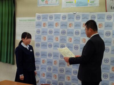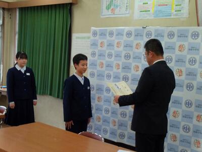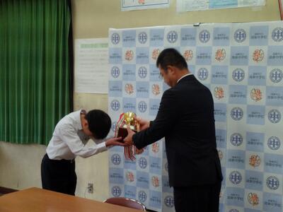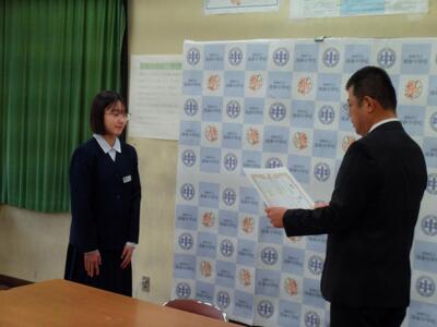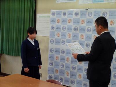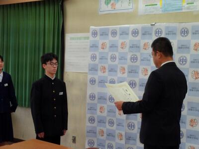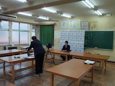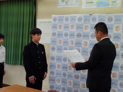 令和7年度第2学期終業式と表彰(本校閲覧室から各教室へのリモートによる開催)
