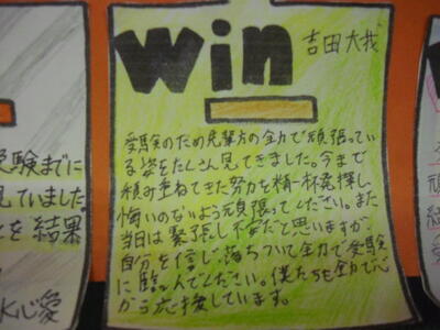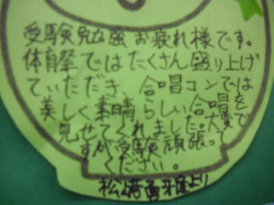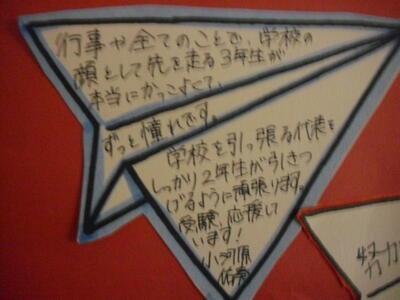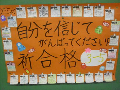 受験応援メッセージ~後輩から先輩(3年生)へ 帰りの会、3年生各クラスへ下級生が訪問~