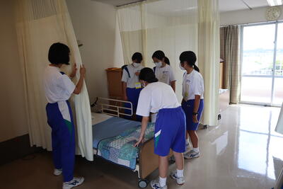 社会体験中は、どの生徒も真剣な表情で事業所の方のお話を聞いて働く場面が見られました。事業所の方からも、生徒たちがとても礼儀正しく、熱心に取り組んでいると、お褒めの言葉を頂くこともありました。